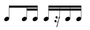 この2つの譜面をスネアで叩くとまったく同じになるわけです。